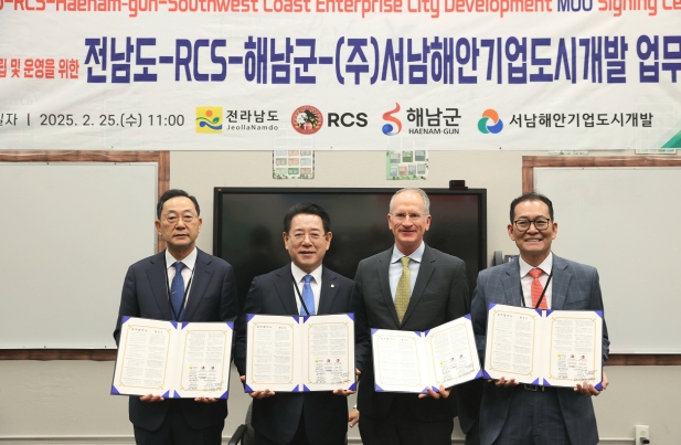 이번 업무협약은 명현관 해남군수와 이성옥 해남군의회 의장, 김영록 전남도지사, 토드 매트슨 RCS 이사장, BS산업 고형권 부회장과 함께 해남군과 전남도, BS산업 관계자들이 참여했다.