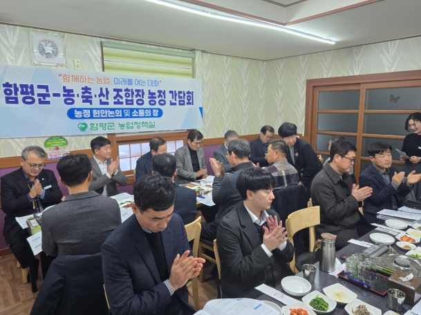 전남 함평군이 농업, 축산업, 산림 분야 발전을 위해 농협중앙회, 지역 농협·축협·산림조합과 함께 간담회를 개최했다.