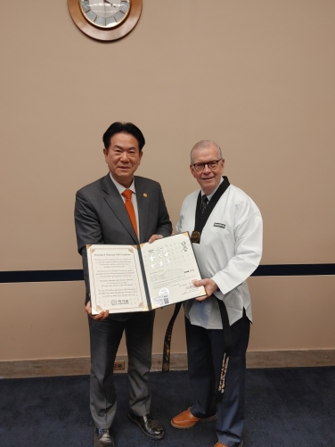 21일(현지 시간) 미국 워싱턴D.C의 RayBurn House 의원회관에서 11선의 미시간주 팀 월버그(Tim Walberg) 하원의원을 만나 명예 7단증을 수여하고, 태권도 발전을 위한 심도 있는 논의를 나눴다.