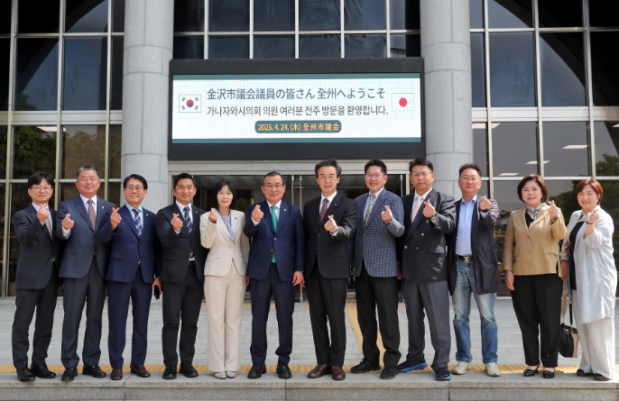 24일 전주시의회는 일본 가나자와시의회 모리 가즈토시(森一敏) 6선 의원을 비롯한 5명의 의원들이 전주시의회를 방문해 간담회를 갖고 양 도시의 교류 확대 방안 등을 논의했다고 밝혔다.