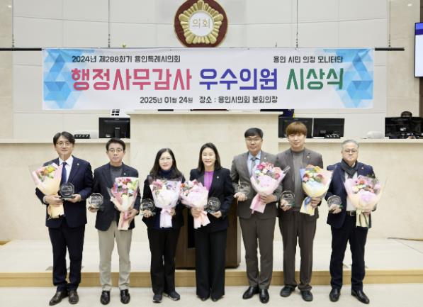용인특례시의회 김길수(구갈동,상갈동/국민의힘), 이상욱(보정동,죽전1동,죽전3동,상현2동/더불어민주당), 김희영(상현1동,상현3동/국민의힘), 임현수(신갈동,영덕1동,영덕2동,기흥동,서농동/더불어민주당), 김영식(양지면,동부동,원삼면,백암면/국민의힘), 이윤미(비례대표/더불어민주당), 김윤선(비례대표/국민의힘), 이교우(신봉동,동천동,성복동/더불어민주당) 의원이 용인특례시 시민 의정모니터단이 수여하는 2024년도 행정사무감사 우수의원으로 선정됐다.