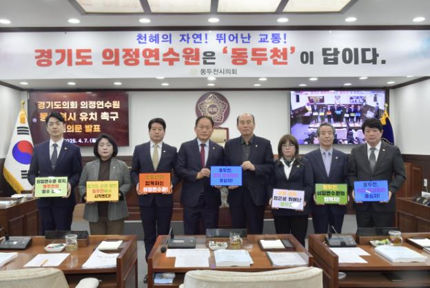동두천시의회는 제337회 임시회 제1차 본회의에서 만장일치로 '경기도의회 의정연수원 동두천시 유치 촉구 건의문'을 채택하여 발표했다.