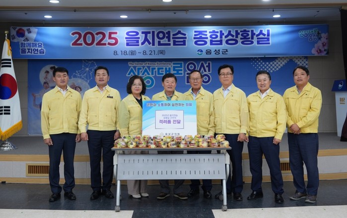 음성군의회가 지난 19일 국가 위기 상황 대응과 비상 대비 태세 강화를 위한‘2025년 을지연습’ 현장을 방문해 훈련 중인 직원들과 유관기관 관계자들을 격려했다.
