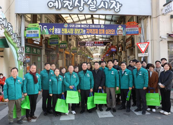 예천군의회는 24일 오전, 예천읍 전통시장에서 의원 및 공무원들이 참여한 가운데 설맞이 전통시장 장보기 행사를 가졌다.