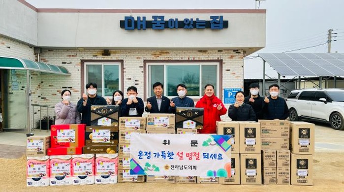 김문수 전남도의회 농수산위원장(더불어민주당, 신안1)은 지난 1월 22일 설 명절을 맞아 신안군 압해읍의 ‘신안보육원’과 지적장애인 거주시설 ‘꿈이있는집’을 방문하여 위문품을 전달하고 관계자들을 격려했다.