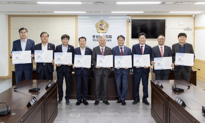 경상북도의회 행정보건복지위원회는 20일, 저출생 극복을 위한 결혼·출산·육아 등에 부담을 주는 사회적 관행 타파에 앞장서고자 행정보건복지위원회 위원 9명이 참석하여「저출생 부담 타파 4대 문화 운동」에 서명·동참하였다.