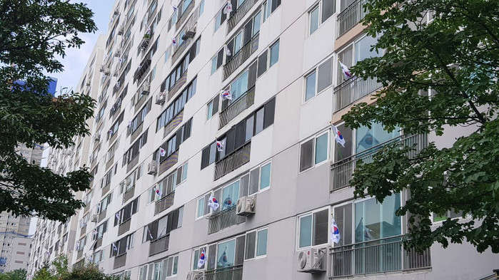 국경일에 태극기를 다는 집이 적어지고 코로나19 상황으로 더욱 보기 힘들었던 태극기였기에 아파트 한 면을 꽉 채워 휘날리는 태극기의 모습에 많은 주민들이 감동했다.