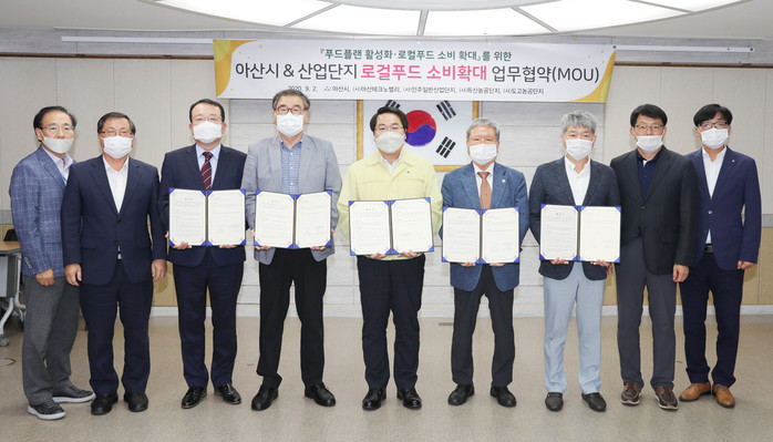 (사)아산테크노밸리, (사)인주일반산업단지, (사)득산농공단지, (사)도고농공단지와 맺은 이번 업무협약은 아산시 푸드플랜 수립과 연계해 안전한 지역먹거리의 생산 및 공급, 로컬푸드 소비 확대를 위해 추진됐다.