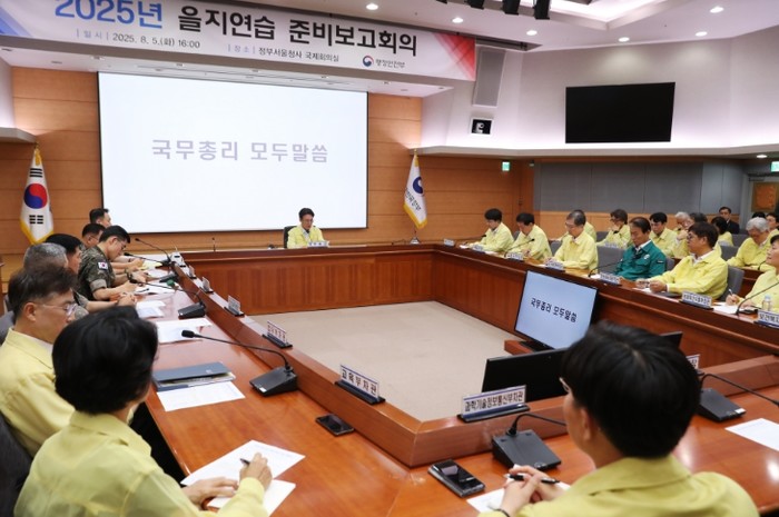 김민석 국무총리는 8월 5일 오후 정부서울청사에서 중앙행정기관장, 시·도지사, 군 지휘관 등이 참석한 가운데 2025년도 을지연습 준비보고회의를 주재했다.