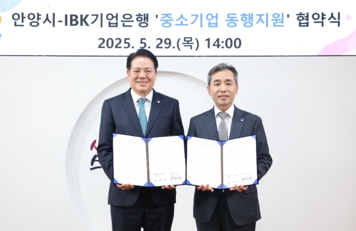 안양시와 IBK기업은행이 관내 중소기업에 대한 정책 자금 지원을 위해 ‘중소기업 동행지원’업무협약을 체결했다고 29일 밝혔다.