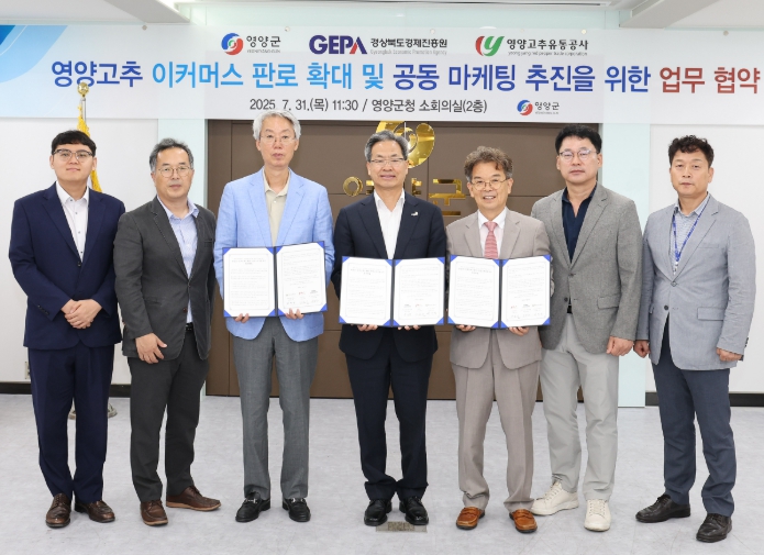 영양군은 7월 31일 영양군청에서 경상북도경제진흥원(원장 송경창), 영양고추유통공사와 함께 '영양고추 이커머스 판로 확대 및 공동 마케팅 추진을 위한 업무협약'을 체결했다고 밝혔다.