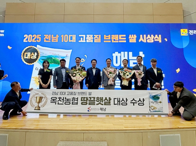 해남군을 대표하는 프리미엄 쌀 브랜드 ‘땅끝햇살’(옥천농협)이 2025년 전라남도 10대 고품질 브랜드 쌀 평가에서 대상을 받는 쾌거를 안았다.