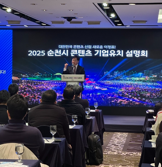 순천시는 지난 22일 서울 강남에서 열린 ‘2025 순천시 콘텐츠 기업 유치 설명회’에 80개사가 참여해 성황리에 개최했다고 밝혔다.