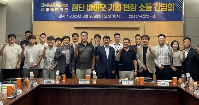 전북특별자치도는 26일 정읍 한국원자력연구원 첨단방사선연구소에서 도내 유관기관 및 바이오 기업들과 간담회를 열고 첨단 바이오 산업의 경쟁력 강화를 위한 협력 방안을 논의했다.