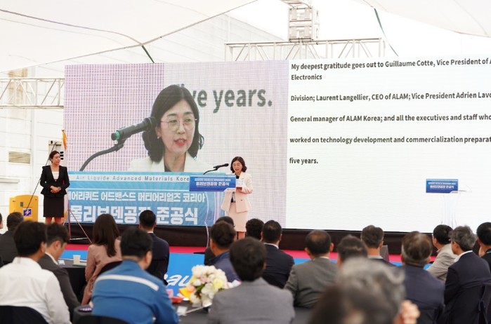 18일 화성시 장안면 에어리퀴드어드밴스드머티어리얼즈코리아에서 열린 준공식에는 기욤 코테 에어리퀴드 전자사업본부 부사장, 로랑 랑젤리에 ALAM CEO, 손우호 ALAM 코리아 대표, 유소정 경기도 투자진흥과장 및 화성시 관계자, 삼성전자·SK하이닉스 고객사 등 약 90명이 참석했다.