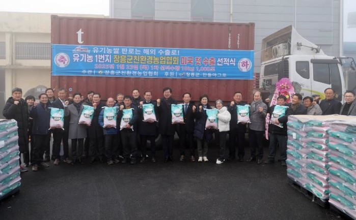 장흥군은 23일 용두농협 미곡종합처리장에서 미국 수출을 위한 친환경 유기농쌀 수출 선적식을 가졌다고 전했다.