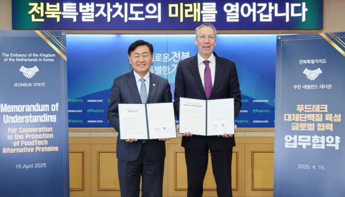 전북특별자치도는 15일 주한네덜란드대사관과 대체단백질 분야의 글로벌 협력 강화를 위한 업무협약(MOU)을 체결했다고 밝혔다.