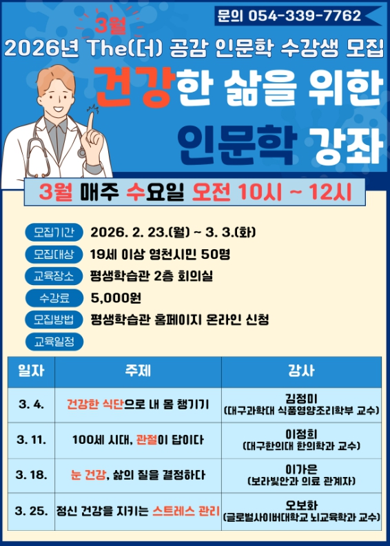 | ▲ 영천시 The(더) 공감 인문학 특강 3월 수강생 모집 홍보 포스터 |