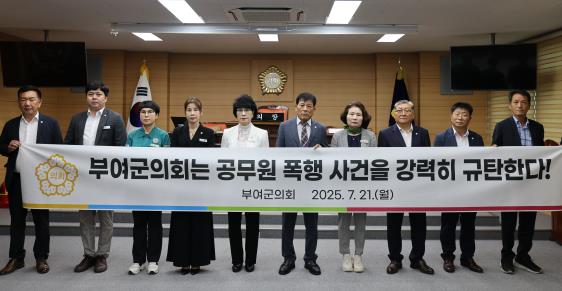 이는 공직자의 정당한 업무 수행을 위협하는 심각한 사안으로, 부여군의회 의원들은 “공무원에 대한 폭력은 명백한 범죄이자, 공공의 안전과 질서를 해치는 용납할 수 없는 행위”라며 강력히 규탄의 뜻을 밝혔다.