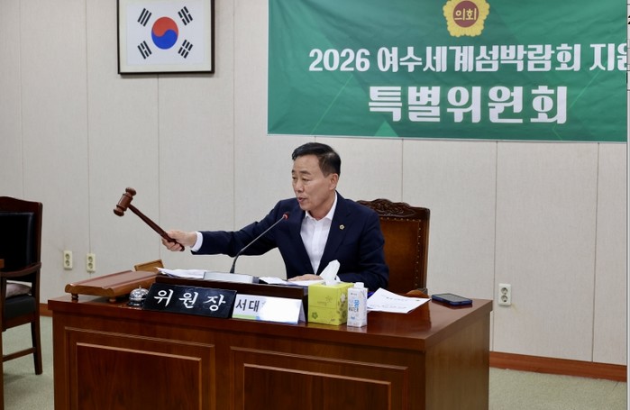 한편, 2026여수세계섬박람회 지원 특별위원회는 서대현 위원장(여수2), 김화신 부위원장(더불어민주당 비례)을 비롯해 이광일(여수1), 이동현(보성2), 최병용(여수5), 강정일(광양2), 한춘옥(순천2), 박선준(고흥2), 주종섭(여수6), 임형석(광양1) 의원 등 총 10명으로 구성돼 있으며, 섬박람회의 성공적 개최를 위한 각종 지원과 정책적 뒷받침을 이어가고 있다.