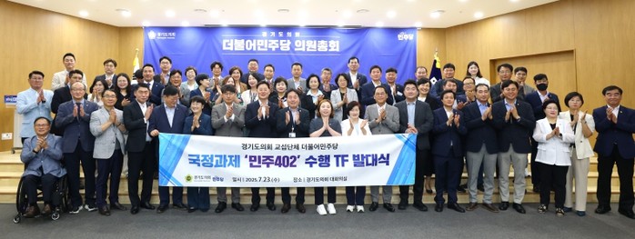 경기도의회 더불어민주당은 23일 의원총회 후 ‘국정과제 민주402 수행 TF’ 출범식을 개최하고, 본격적인 활동에 돌입했다.