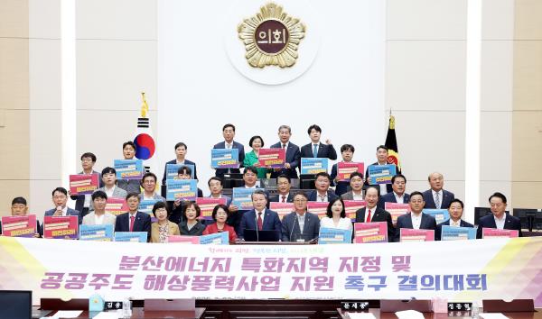 특히 이날 결의대회에서는 정해권 의장을 비롯한 재석의원 전원이 참석해 지역 차별 해소와 지방정부 주도의 재생에너지 정책 추진을 위한 결연한 의지를 표명했다.