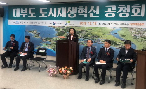 박순자 국회 국토교통위원장(자유한국당, 안산단원을)과 국토교통부, LH는 12일 안산 대부도 대부해양관광본부에서 「대부도 도시재생혁신 공청회」를 공동으로 개최했다.
