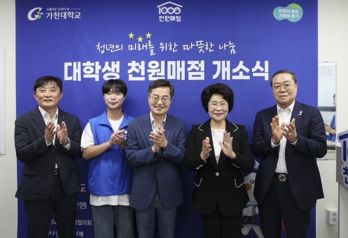 경기도는 고물가로 늘어난 대학생 생활비 부담을 실질적으로 낮추기 위해 전국 최초로 ‘대학생 천원매점’을 성남 가천대와 평택대학교에 3일 개소했다.