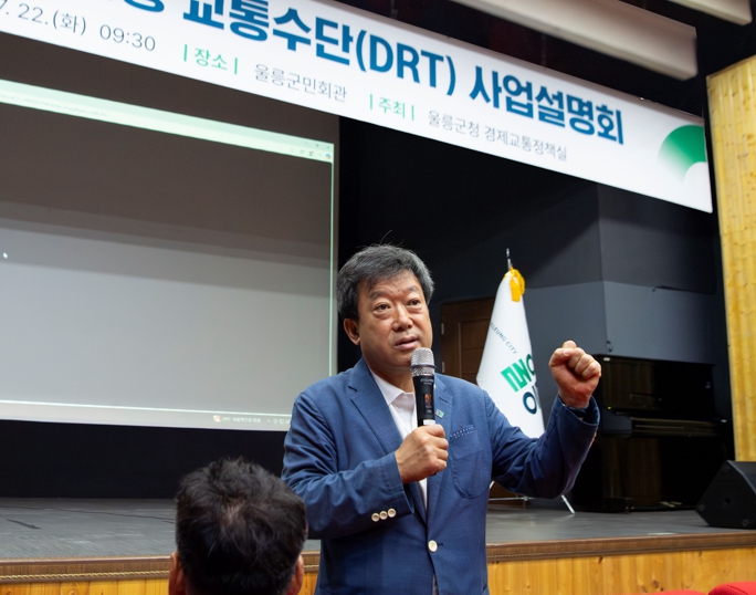 울릉군은 지난 22일, 울릉군민회관에서 수요응답형 교통수단(DRT) 도입을 위한 사업설명회를 개최했다.