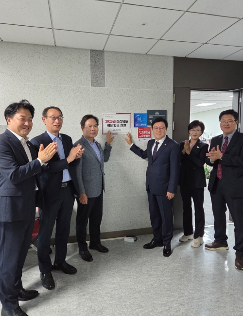 경상북도는 2026년도 국가 투자예산 확보를 위한 국회 심의에 총력을 다하기 위해 23일 국회 예산결산특별위원회 위원인 박형수 국회의원(국민의 힘, 의성·청송·영덕·울진) 사무실에서 ‘경상북도 국비 캠프 현판식’을 열고 본격적인 활동에 돌입했다.