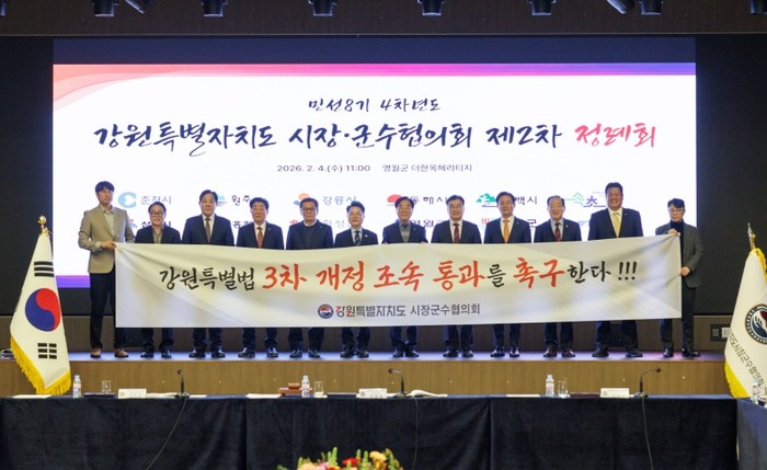 강원특별자치도시장군수협의회는 2026년 2월 4일 오전 11시, 영월군 ‘더 한옥헤리티지 영빈관’에서 민선8기 4차년도 제2차 정례회를 개최하고 각 시·군의 주요 현안에 대하여 심의하고 대응책을 논의했다.