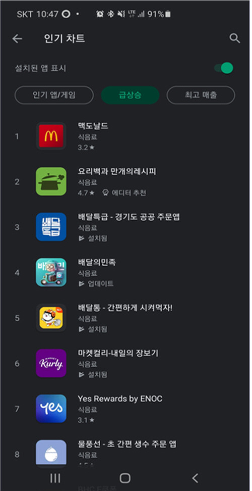 소비자들의 높은 관심에 힘입어 구글플레이와 앱스토어에서는 무료 앱 인기차트 3위를 기록했고, 앱스토어 음식 및 음료 카테고리 애플리케이션 중에서는 1위를 기록했다(1일 오후 10시 30분 기준).