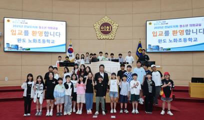 ▲ 전라남도의회 이철 부의장, 완도 노화초 학생들과 ‘청소년 의회교실’ 함께해 |