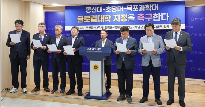이날 기자회견에 참석한 도의원들은 △지역균형 발전 원칙을 반영한 동신대-초당대-목포과학대 연합의 글로컬대학 본지정 △정부의 재정ㆍ제도적 지원 적극 보장 △대학-지자체-지역사회가 함께하는 지산학 협력 모델 추진 등을 한목소리로 촉구했다.