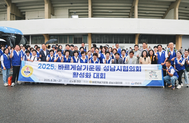 성남시의회는 26일, 소노벨 천안에서 열리는 2025 바르게살기운동 활성화 수련대회에 참가하는 성남시협의회 회원 200여 명을 배웅하며 격려와 축하를 전했다.