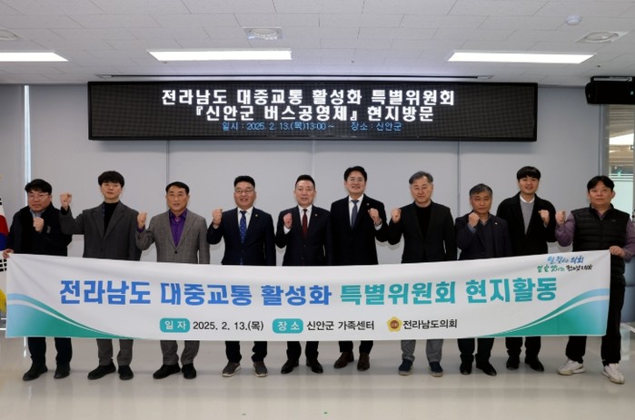 '전라남도 대중교통 활성화 특별위원회'는 2월 13일 신안군을 방문해 버스완전공영제 추진과정과 운영 방법을 청취하고, 전라남도 내 교통 소외지역의 대중교통 활성화 방안에 대해 논의했다.