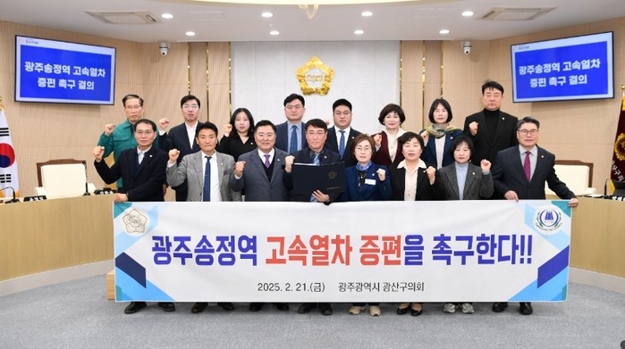 광산구의회는 결의안을 통해 “광주송정역의 고속철도 이용객 수는 해마다 지속 증가해 2022년 일일 9천8백 명, 연간 360만 명에서 2024년 일일 1만 2천 명, 연간 432만 명으로 늘었지만, 열차 운행 횟수와 편성 등의 여건은 그 수요를 따라가지 못해 시민들의 정당한 이동권이 침해당하고 있다”고 밝혔다.