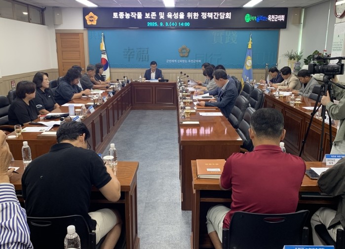 옥천군의회는 3일 옥천군의회 간담회실에서 산업경제위원회(위원장 송윤섭) 주관으로 ‘토종농작물 보존 및 육성을 위한’ 정책간담회를 개최했다.