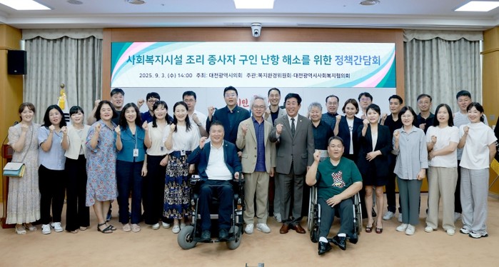 대전시의회 복지환경위원회는 3일 시의회 소통실에서 이효성 의원(국민의힘, 대덕구1) 주재로 '사회복지시설 조리 종사자 구인 난항 해소 정책간담회'를 개최했다.