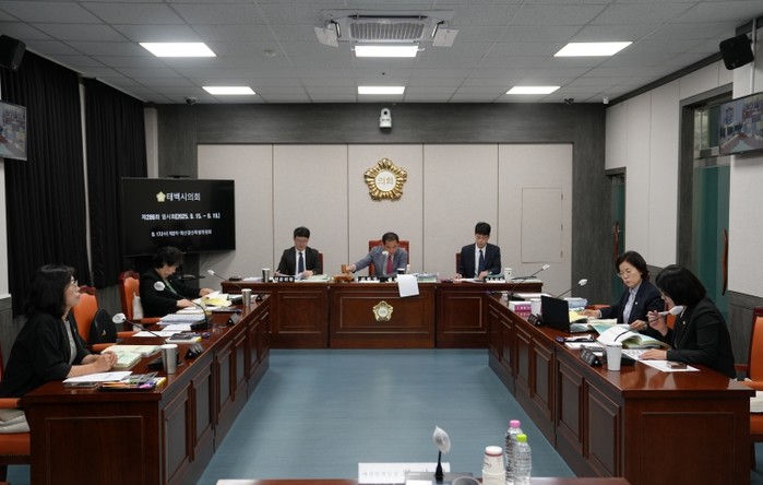 태백시의회는 17일 제286회 태백시의회 임시회 제2차 예산결산특별위원회(위원장 정연태)를 개최하여 보건소, 교육과, 농업과 등 18개 부서에 대한 2025년도 제3회 추가경정예산에 대한 보고를 받았다.