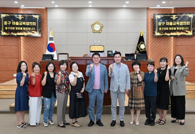 이에 대해 박경흠 의장은 “아이 한 명을 키우는데 온 마을이 필요하다는 아프리카 속담처럼 이제 우리 아이들을 훌륭한 인재로 육성시키기 위해선 학교와 마을, 마을과 마을이 서로 연결된 연대의 노력이 필요하다”며 “중구 아이들의 교육적 성장을 돕기 위해서라도 마을교육협의회와 긴밀히 소통하며 중구의회도 보탬이 될 수 있도록 힘쓰겠다”고 강조했다.
