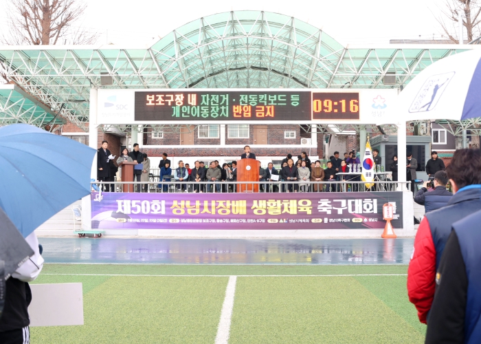 이덕수 의장은 “생활체육 축구대회는 단순히 승패를 겨루는 것이 아닌 서로를 격려하고 희망을 나누며, 성남의 오랜 역사와 함께 지역사회의 우정이 깊게 스며든 소중한 대회”라며, “50번째를 맞이한 오늘 대회가 선수 여러분의 선전과 관객 여러분의 환호 속에서 더욱 빛나는 자리가 되기를 바란다.”라고 말했다.