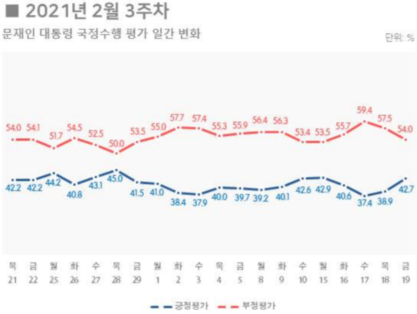 리얼미터는 신현수 청와대 민정수석과 박범계 법무부장관 갈등이 문 대통령의 지지율 하락에 영향을 미친 것으로 봤다. 실제 지난 17일 청와대가 신 수석의 사의 표명 사실을 발표한 날 지지율은 37.4%(부정평가 59.4%)까지 떨어졌다. 이외에도 이명박 정부 시절 불법사찰 논란, 김명수 대법원장 거짓말 논란 등이 지지율에 영향을 준 것으로 분석됐다.