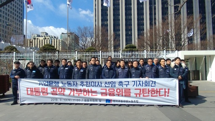 (이슈타임)김혜리 기자=전국금융산업노동조합 IBK기업은행지부(이하 노조)가 금융위원회에 노동자 사외이사 추천안 수용을 촉구하고 나섰다.
