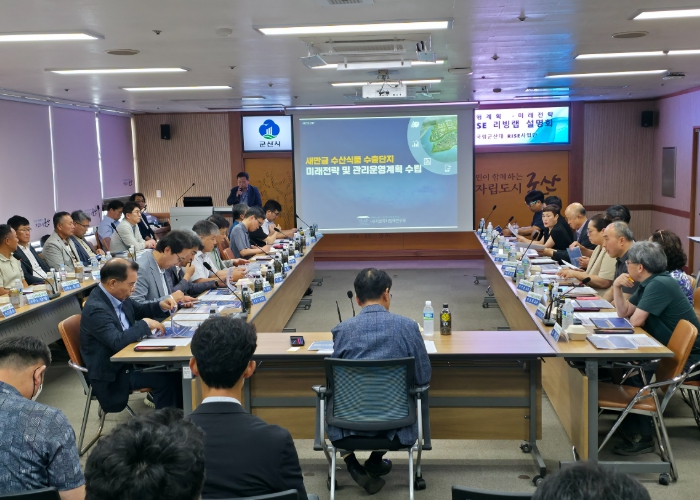군산시가 ‘새만금 수산식품 수출단지 관리운영계획 연구용역 및 미래전략 중간보고회 및 리빙랩 협의체 설명회’를 25일 개최했다.