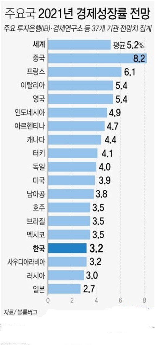 블룸버그, “세계 경제 5.2%, 한국은 다소 낮은 3.2% 성장”