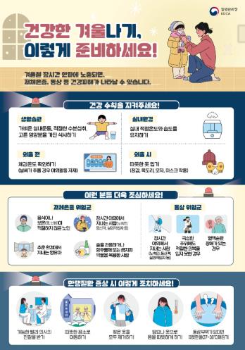 또 모자와 목도리, 장갑, 마스크 등을 착용해 신체 노출을 최소화하고, 실내에서도 난방이 충분하지 않을 경우 보온에 각별히 신경 써야 한다고 강조했다.