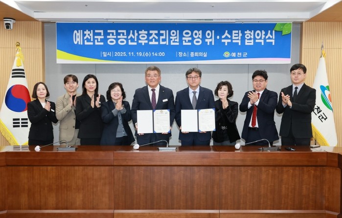 예천군은 19일 오후 2시, 군청 중회의실에서 예천권병원(병원장 권규호)과 예천군 공공산후조리원 운영 위‧수탁 협약을 체결하고 안정적이고 전문적인 산후 돌봄 서비스 제공을 위한 상호 협력을 약속했다.
