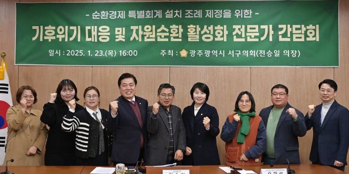 전승일 광주 서구의회 의장 주관으로 열린 이번 간담회는 '순환경제 특별회계 설치 및 운용 조례' 제정에 앞서 관계자들의 의견을 수렴하기 위해 마련됐다.