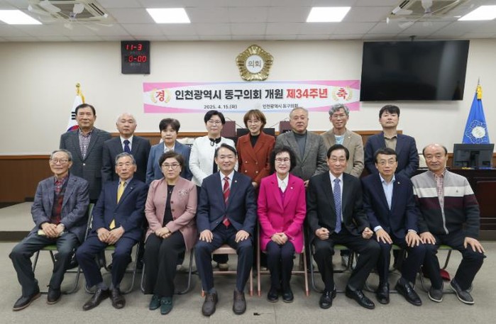인천 동구의회는 지난 15일 의장실에서 ‘인천 동구의회 개원 34주년 기념행사’를 개최했다.